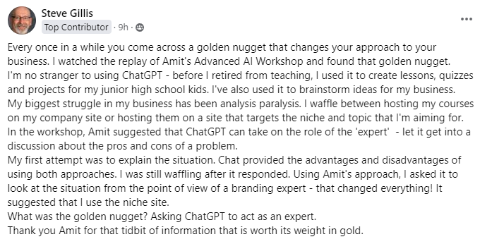 I was skeptical about AI copywriting at first, but this challenge completely changed my perspective. The daily lessons were concise, actionable, and incredibly valuable. I loved how Amit broke down complex concepts into easy-to-understand steps. Thanks to this challenge, I now have a high-converting landing page that I'm truly proud of!